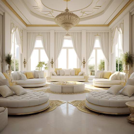 Statement chandeliers and ambient lighting for Arabic lounges.