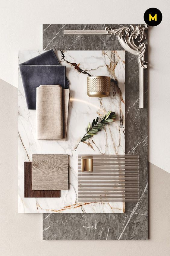 Our creative journey starts here. We assemble textures, colors, and materials that inspire us, capturing the essence of your vision in a tangible format.